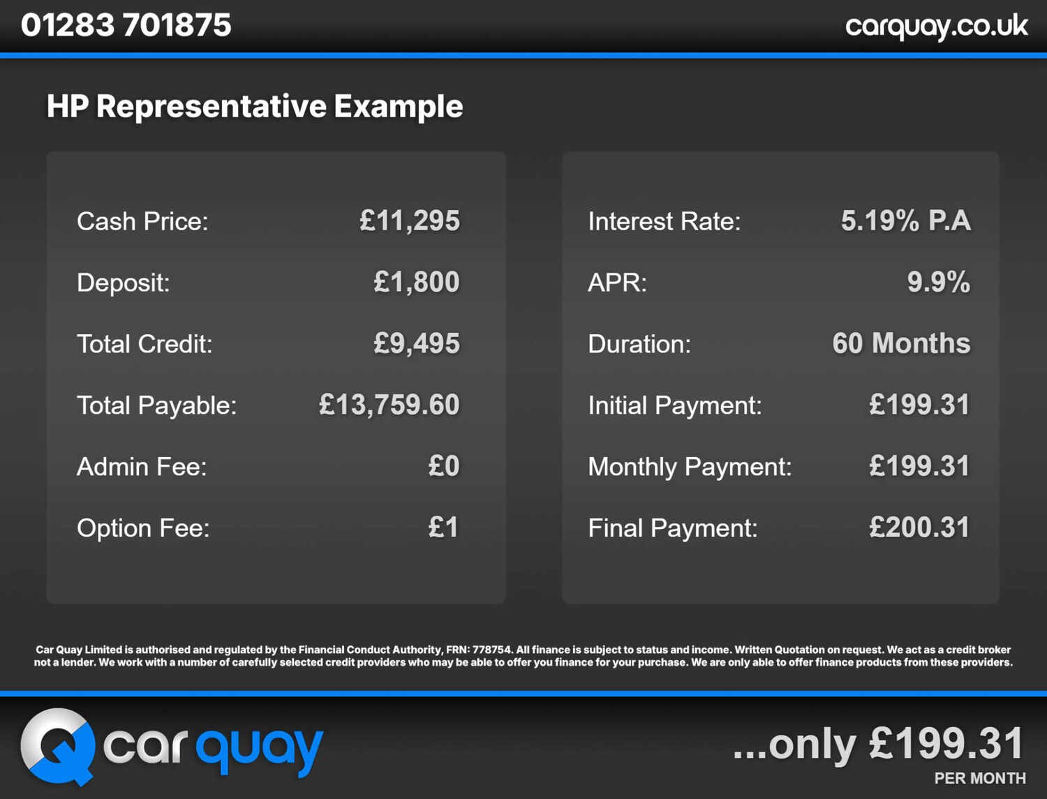 Rates from 9.9% APR: the exact rate you will be offered will be based on your circumstances, subject to status. Representative example: borrowing £7,000 over 5 years with a representative APR of 21.9%, the annual interest rate of 21.9% (Fixed) and a deposit of £0, the amount payable would be £185.33 per month, with a total cost of credit of £4,119.81 and a total amount payable of £11,119.81. We look to find the best rate from our panel of lenders and will offer you the best deal that you're eligible for. We receive a fixed fee commission per finance agreement, or we receive a commission based on a percentage of the total amount of finance taken. This will not affect the interest rate offered or the total amount repayable. Our service is free.